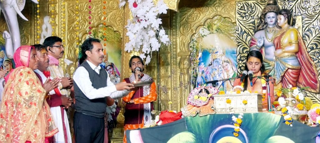 डिण्डौरी। किशोरी गार्डन में चल रही श्रीमद् भागवत महापुराण कथा का तृतीय दिवस संपन्न परीक्षक बने श्रीमती सुशीला राम लाल बर्मन के द्वारा श्रीमद्भागवत महापुराण कथा की आरती हुई आरती के बाद आए हुए अतिथियों के द्वारा पूज्य देवी रक्षा सरस्वती जी का स्वागत हुआ स्वागत के बाद दीदी जी ने मंगलाचरण किया मंगलाचरण के बाद संकीर्तन संकीर्तन के बाद आज सुंदर सृष्टि वर्णन की कथा श्रोताओं ने श्रवण की परीक्षित जन्म आदि कथाओं का श्रवण पूज्य देवी जी ने कराई साथ ही बताया कि हिंदू संस्कृति एक पावन संस्कृति है इसको सदा सजो कर रखना चाहिए हिंदू संस्कृति के लिए हमें आवश्यक है कि हम अपने संस्कारों को ना भूलें हिंदू धर्म एक पावन पवित्र धर्म है इनका अनुसरण करना आवश्यक है जो व्यक्ति वेदों का ज्ञान रखता है वह अपना व्यक्तित्व सदा ऊंचा बनाए रखता है बनावटी दुनिया से हटकर हमेशा भगवान के चरणों में मन को लगाए रखने से जीवन सहजता से व्यतीत हो जाता है मां-बाप दुनिया का वह अमूल्य धन है जिस के पास नहीं होता है वही इसका मूल्य समझ पाता है संध्याकालीन में 6ः30 बजे आरती हुई आरती के बाद प्रसाद वितरण हुआ प्रसाद वितरण के बाद बताया गया कि कल कथा का समय दोपहर 2 बजे से शाम 5ः30 बजे तक कथा का समय रहेगा देवी जी ने आग्रह किया कि आप सभी अधिक से अधिक संख्या में पधार कर कथा को श्रवण करें।