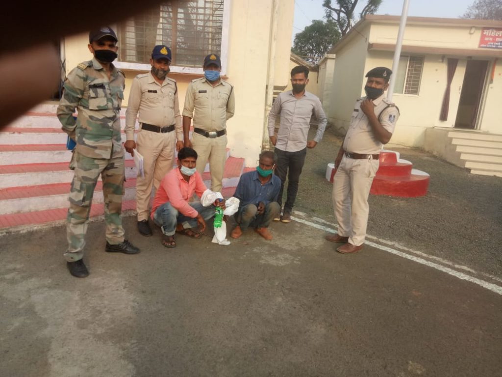 लोकविचार विक्रमपुर- पुलिस अधीक्षक डिंडोरी के निर्देशन एवं अतिरिक्त पुलिस अधीक्षक डिंडोरी के मार्गदर्शन में तथा एसडीओपी शाहपुरा के दिशा निर्देशन में पुलिस की सक्रियता से दिनांक 10/04/2021 को चौकी विक्रमपुर पुलिस द्वारा दोपहिया वाहन बजाज डिस्कवर MP54MA7467 में बैठे चिंतामणि और मुन्ना परस्ते दोनों निवासी थाना नोरोजाबाद जिला उमरिया के कब्जे से अवैध मादक पदार्थ 01 किलो 800 ग्राम गांजा विक्रमपुर चौकी अंतर्गत ग्राम छीवली में एक दो पहिया वाहन बजाज डिस्कवर तथा एक मोबाइल फोन जप्त किया एवं दोनों आरोपियों के विरुद्ध अपराध क्रमांक 111/21 धारा 8/20 NDPS Act. पंजीबद्ध कर दोनों आरोपियों को गिरफ्तार किया गया । जिन्हें माननीय न्यायालय रिमांड पर पेश किया गया है। दोनों आरोपी अपने दोपहिया वाहन सें गांजा लेकर नरोजाबाद से ग्राम छिवली की तरफ आ रहे थे जिन्हें मौके पर नाकाबंदी कर चौकी प्रभारी विक्रमपुर एवं पुलिस स्टाफ के द्वारा पकड़ा गया है। उक्त कार्रवाई में चौकी प्रभारी विक्रमपुर उपनिरीक्षक संजय सोनवानी प्रधान आरक्षक रामरतन मार्को ,आरक्षक छोटेलाल देसिया ,आरक्षक गोविंद मरावी ,आरक्षक निशांत पटेल आरक्षक खेमराज, आरक्षक अजय मरकाम की सराहनीय भूमिका रही है ।