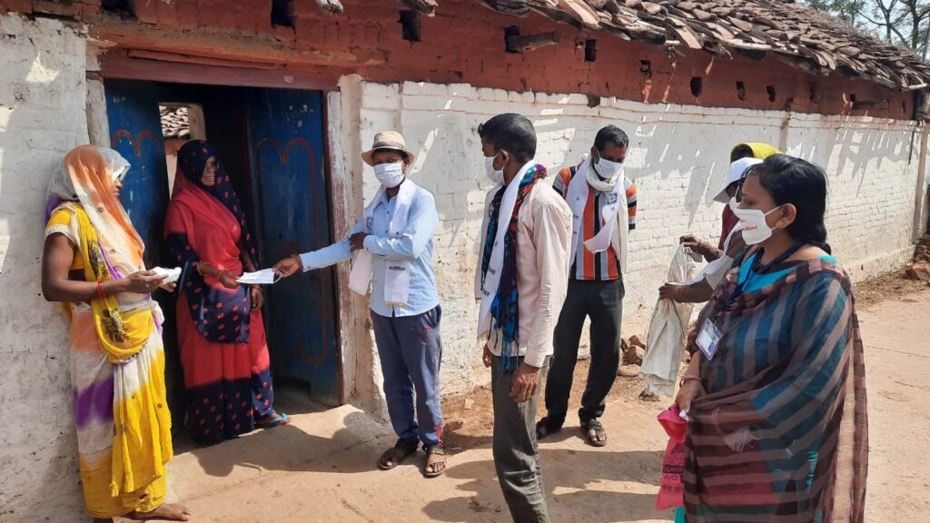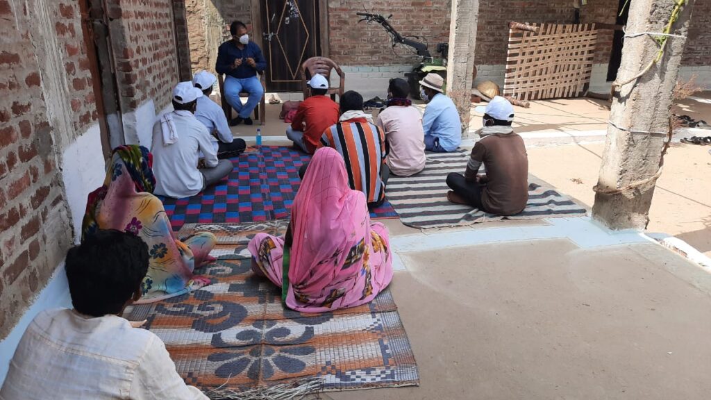 विकास खंड शहपुरा मे कोरोना वालेंटियर अभियान अंतर्गत लोगो को मास्क लगाने और सोशल डिस्टेसिंग का पालन करने तथा टीकाकरण कराने के विषय मे जन अभियान परिषद के वालेंटियर अब घर घर जाकर लोगो के स्वास्थ्य की जांच मे सहयोग कर रहे है साथ ही 18 वर्ष से अधिक के लोगो टीकाकरण हेतु प्रेरित कर रहे है इसी तारतम्य मे आज ब्लॉक शहपुरा ग्राम बस्तरा में सेक्टर बैठक कर कोरोना वॉलेंटियर के प्रशिक्षण सह बैठक आयोजित की गई।जिसमे ग्राम में अधिक से अधिक लोगो को टीकाकरण करवाने हेतु घर सम्पर्क करने पर चर्चा की गई।इस दौरान किट वितरण कर,वालेंटियर्स के साथ ग्राम में मास्क वितरित किये और टीकाकरण हेतु प्रेरित किया। इनका मिल रहा सहयोग- इस दौरान जिला समन्वयक वीरेंद्र सिंह ठाकुर,ब्लॉक समन्वयक डॉ. निलेश्वरी वैश्य और पंजीकृत वालेंटियर्स गजराज सिंह,खेरसिंह, विनोद,अनिल,अशोक विश्वकर्मा,लेख सिंह परस्ते,अनिल वरकड़े,सुनीता बाई, कृष्णा बाई, प्रयाग सिंह वरकड़े,सहदेव सिंह परस्ते उपस्थित रहे।