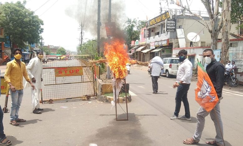 भारतीय जनता युवा मोर्चा ने फूँका पूर्व मुख्यमंत्री कमलनाथ का पुतला, …