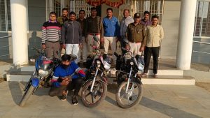 डिण्डौरी। सुप्रीम कोर्ट एवं पुलिस मुख्यालय द्वारा बिना हेलमेट, सीट बेल्ट धारण किये वाहन चालको के विरुद्ध प्रभावी कार्यवाही हेतु आदेशित करने पर पुलिस अधीक्षक संजीव कुमार सिन्हा के निर्देशन में एवं अति0 पुलिस अधीक्षक जगन्नाथ मरकाम व अनुविभागीय अधिकारी (पुलिस) अनुभाग डिण्डौरी के के त्रिपाठी के मार्गदर्शन में थाना प्रभारी गाडासरई निरीक्षक दुर्गा प्रसाद नगपुरे द्वारा थाना क्षेत्र में लगातार प्रतिदिन बिना हेलमेट, सीट बेल्ट धारण किये वाहन चालको के विरुद्ध प्रभावी कार्यवाही की जा रही। इसी तारतम्य में दिनांक 27 दिसंबर को ग्राम कोसमडीह में वाहन चेकिंग के दौरान एक मोटरसाइकिल वाहन चालक बिना हेलमेट पहने वाहन चलाते पाए जाने पर पूछताछ दौरान पता चला कि वह HF डीलक्स मोटरसाइकिल क्रमांक CG10AN0168 को ग्राम रूसा से चोरी की है एवं विक्रय के लिए लेकर जा रहा है जिस पर धारा 41(1-4) जाफौ एव 379 ताहि के तहत कार्यवाही करते हुए मोटरसाइकिल सहित आरोपी केशव उर्फ चमरा तिलगाम पिता बिसाहू सिंह तिलगाम जाति गोड उम्र 32 वर्ष निवासी ग्राम कंण्डीकापा थाना करनपठार जिला अनुपपुर मप्र को गिरफ्तार कर अपराध पंजीबद्ध किया जाकर गहनता से आरोपी से पूछताछ करने पर आरोपी के द्वारा ग्राम गीधा से चोरी की गयी HF डीलक्स मोटरसाइकिल क्रमांक MP52MD7964 एव ग्राम रूसा से चोरी की गई बजाज पल्सर मोटरसाइकिल क्रमांक CG10AF8246 को बरामद की गई है। ऐसे करीब 03 लाख किमती की 03 मोटरसाइकिलो को आरोपी से जप्त की गई। उक्त कार्यवाही में थाना प्रभारी गाडासरई निरी0 दुर्गाप्रसाद नगपुरे, सउनि शेख आजाद, सउनि बालमुकुंद चौरसिया, सउनि अनिल उसराठे, सउनि संतोष रजक, प्रआर 81 हरनाम सिंह, प्रआर 298 पंकज सिंह, चाप्रआर0 206 शिध्दू मरावी, आर 352 आशीष लांजेवार, आर 318 देवेन्द्र पटले, आर 420 कल्याण, 388 सतेन्द्र उइके, आर 21 धनंजय, आर 417 राजा की महत्वपूर्ण भूमिका रही।