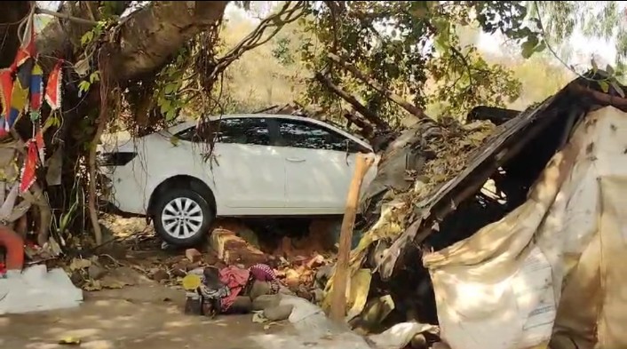 नशे में धुत डॉक्टर ने झोपड़ीनुमा घर में घुसेड़ दी कार, घर में सो रहा आदिवासी ग्रामीण हुआ घायल