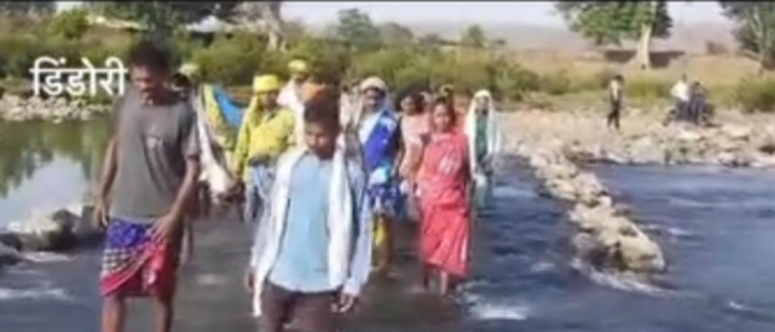 मतदाता नर्मदा नदी को पैदल पार कर पहुंच रहे मतदान केंद्र