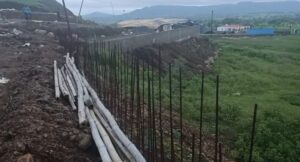 बाउंड्री वॉल में निर्देश के अनुसार स्लोप बनायेंगे, सपोर्ट के लिए बाहर से मुरुम लगाया गया है